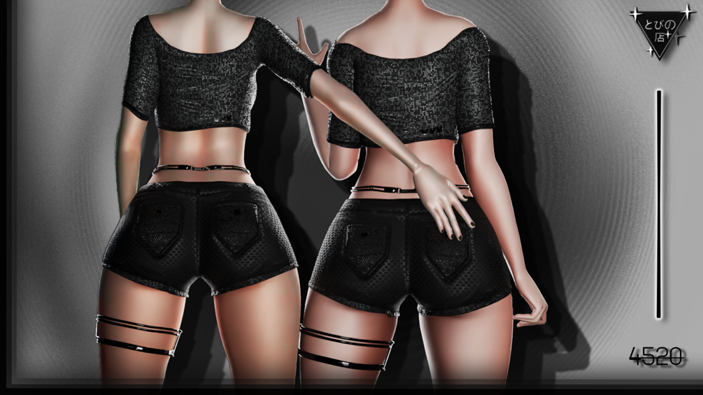 This product has modeled for compatibility with VRC avatars. It includes separate texture sets for the Pants, Top, and Harness, so you change your textures the way you want. It's rigged for both Zinpia and Tori base, so you'll receive two FBX files for your convenience.